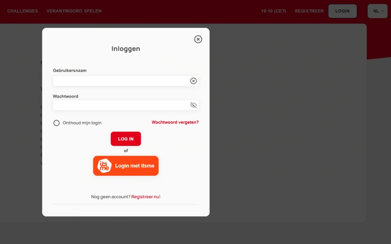 - Bezoek de officiële Bingoal website en klik op de registratieknop